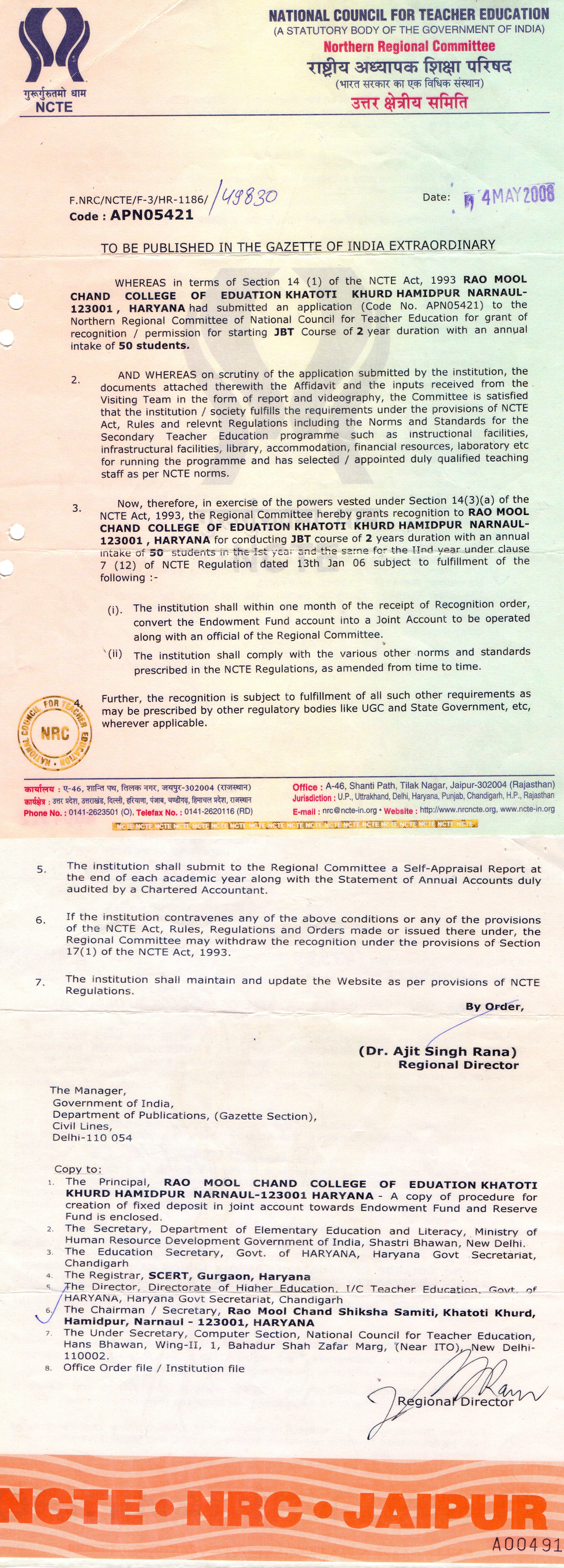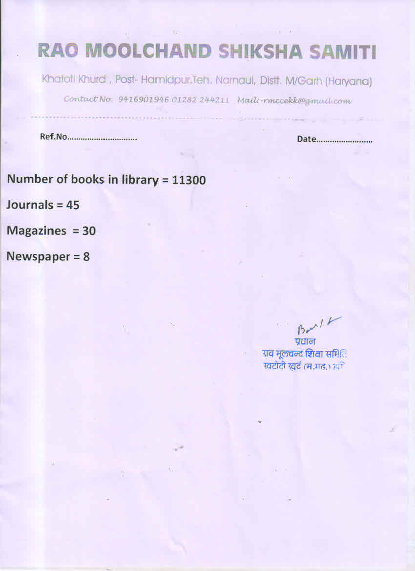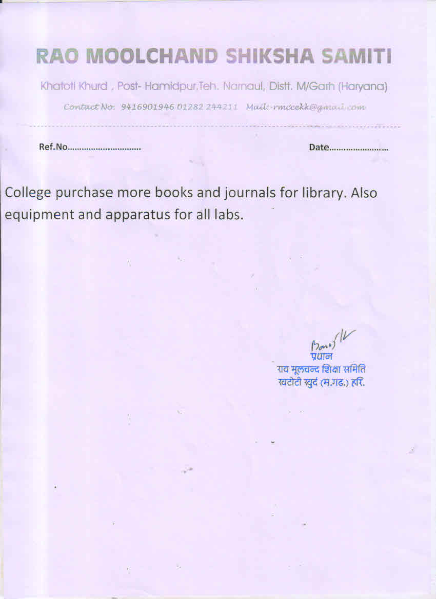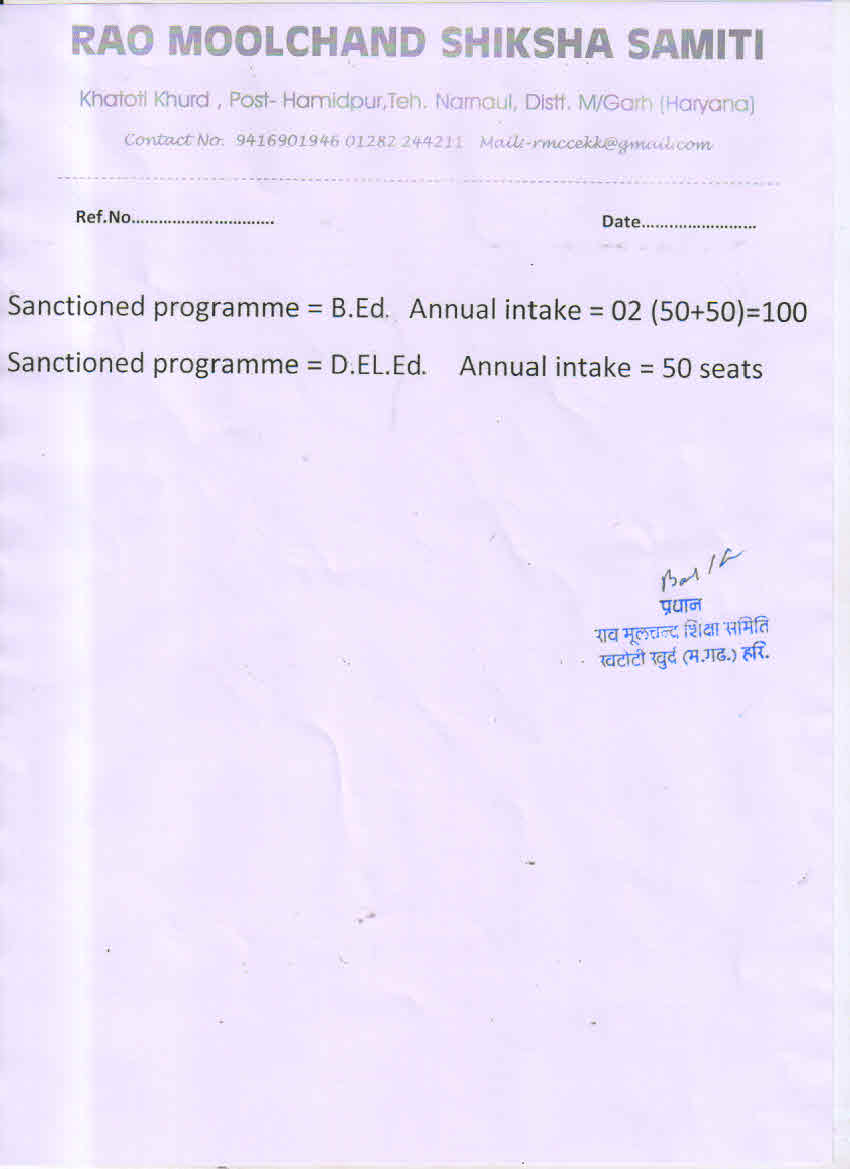 Our degree programs prepare students for the real world and offer the opportunity for practical, hands-on experience, internships and projects take advantage of this experience to gain the practical skills employers are looking for and open your mind to career opportunities.Academics at Rao Mool Chand College of Education keep pace with workplace demands and ensure that students are �work ready� and in touch with what�s expected in a professional environment. So, we ENVISION that every child must get best quality teacher and Rao Mool Chand College of Education prepares competent and committed teachers and other school personnel to become active change agents that recognize